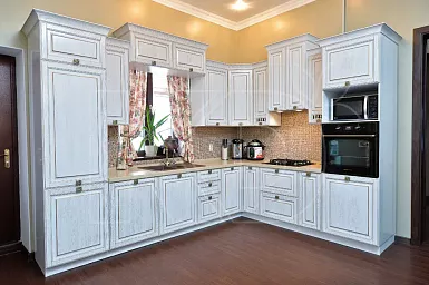 Компания «Кухонный двор» производит гарнитуры из натуральной древесины и качественного МДФ. У нас можно заказать кухню с фасадами любой расцветки. Наша продукция обладает следующими преимуществами: