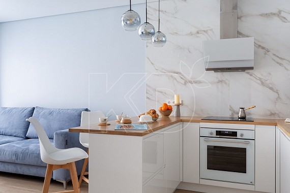 Отсутствие навесных шкафов не означает отказ от дополнительного освещения. Осветительные приборы можно разместить на стенах. Например, симметрично расположенные светильники. Для освещения рабочей зоны оптимально использовать свисающие с потолка лампы на тросах. Они смотрятся стильно и эффектно. Светодиодные ленты и точечные споты можно расположить на коробе, в котором скрыты коммуникации. Такой подсветки хватит для качественного освещения кухни П-образной без верхних шкафов.