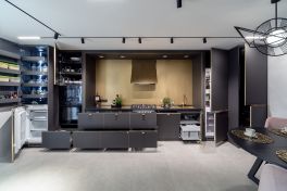 У специалистов КД получилась просторная, многоярусная кухня с эффектными элементами разной глубины. Место здесь есть и для продуктов, и для кухонной утвари, и для современной бытовой техники! При всей своей вместительности, «Ханна» расположена очень компактно. Оставшегося в помещении пространства с лихвой хватило на создание мини-столовой и стильной лаунж-зоны. Отдыхать, наслаждаться любимыми блюдами, создавать кулинарные шедевры… Здесь всё это – удовольствия, которые так и хочется разделить с близкими!